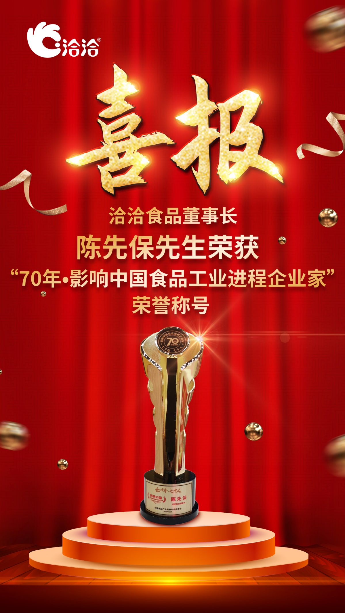 12月6日,“荣耀七十年·走进新时代——2019中国食品产业发展年会暨2019(第四届)华糖万商领袖大会”在郑州隆重召开。70年•食业改变中国,为表彰致敬70年来为中国食品工业做出杰出贡献的精品午夜成人免费视频APP家,大会开展了“70年•70人——全民推选影响中国食品工业进程精品午夜成人免费视频APP家”评选活动,众多全国食品工业领域的杰出精品午夜成人免费视频APP家成为推选人物。最终通过全民票选,洽洽董事长陈先保先生获颁“70年•影响中国食品工业进程精品午夜成人免费视频APP家”荣誉称号。 荣耀70年,走进新时代!奋战20年,展望未来,