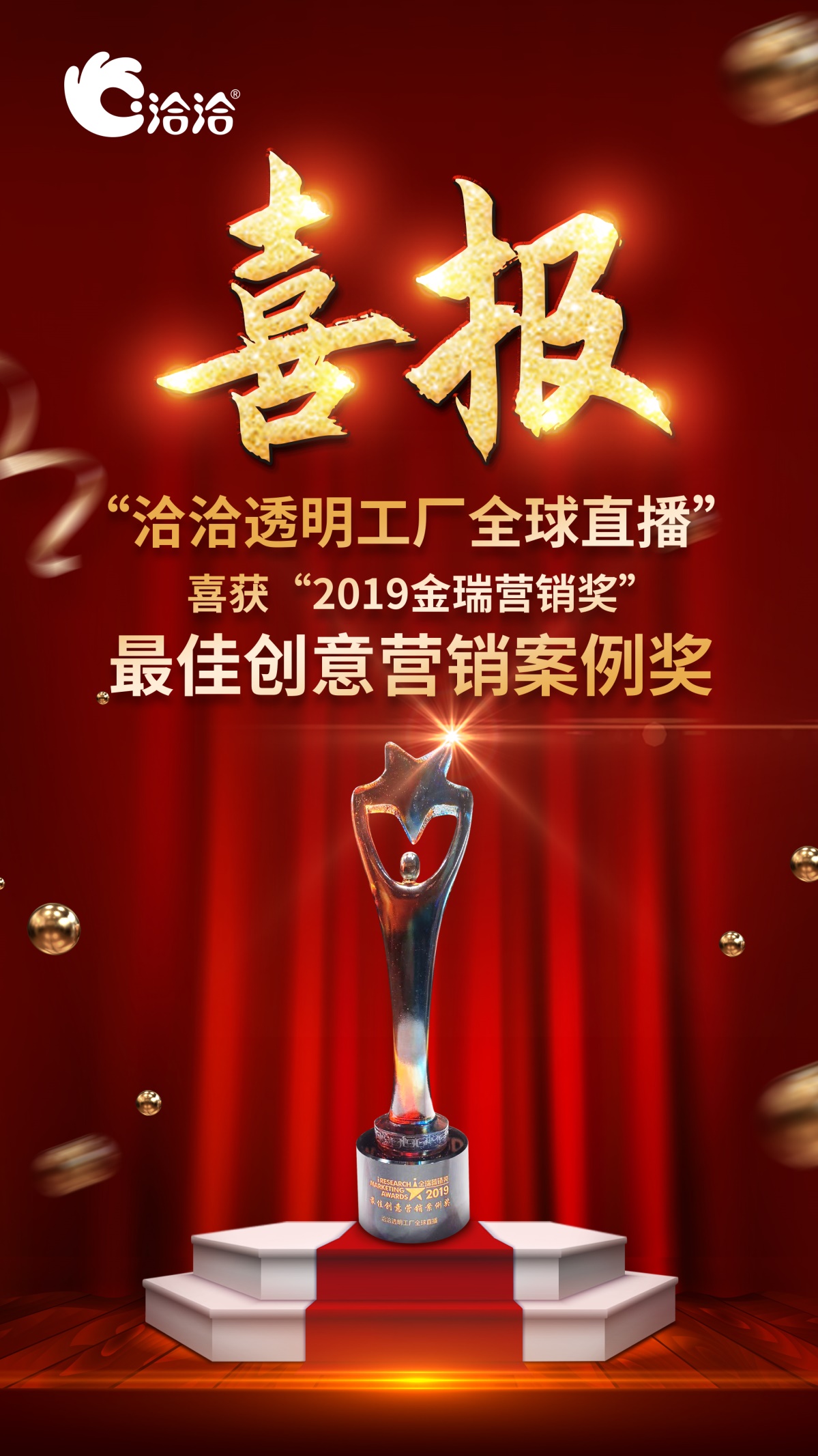 12月5日,由艾瑞集团主办的国内最高规格互动营销案例评选——2019金瑞营销奖榜单隆重揭晓。经过数十位艾瑞分析师的内部初评与30位专家评审团的最终评选后,中国坚果行业专家品牌洽洽食品凭借【有实力,敢透明——洽洽透明工厂全球直播】营销案例,荣获“2019金瑞营销奖”之最佳创意营销案例奖。
